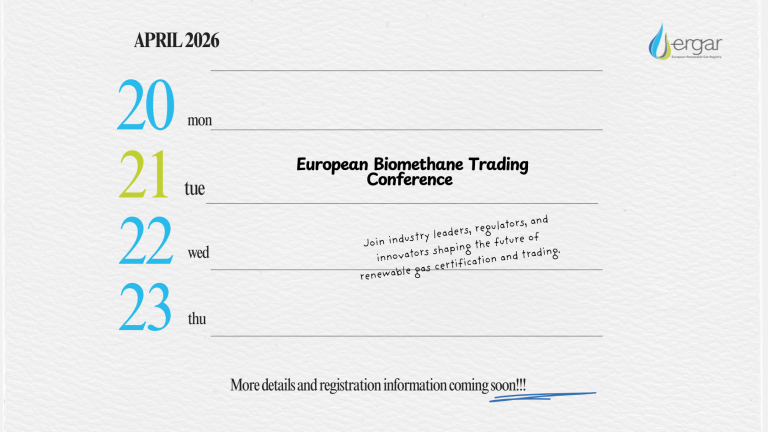 We are pleased to announce that ERGaR will host the first-ever European Biomethane Trading Conference on 21 April 2026 in Amsterdam, the Netherlands. This new annual conference will serve as Europe’s meeting point for the biomethane trading community, bringing together registries, traders, and market actors to advance the dialogue on renewable gas trade and certification,…